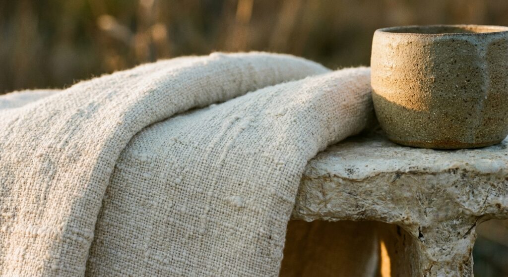 - Organic Linens: Heavy-weight textiles sourced from flax farmers utilizing regenerative agriculture practices.
